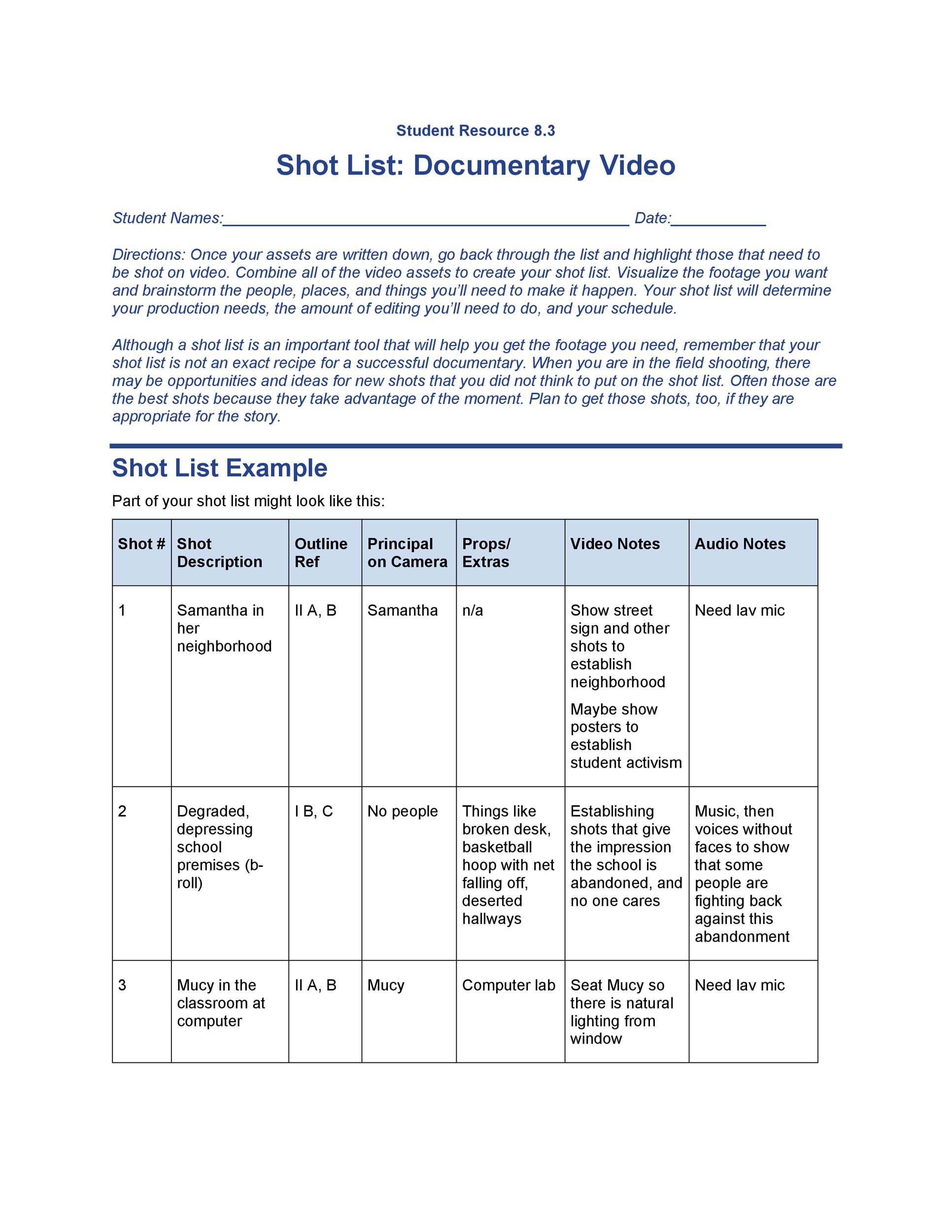 Budding directors and film students will be pleased to know that there are different shot list templates available on the internet which helps you create a .